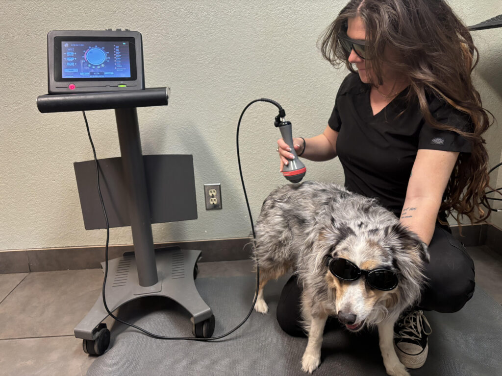 Class IV (warm) laser therapy involves a low-intensity laser to help to relax your pet’s muscles, stimulate their cellular function and encourage natural healing processes. Therapeutic laser directly helps reduce pain and inflammation.